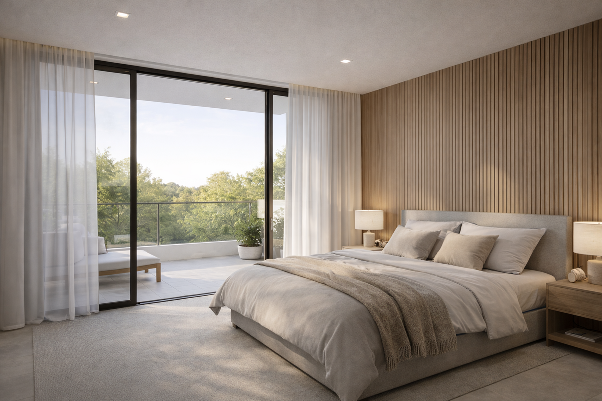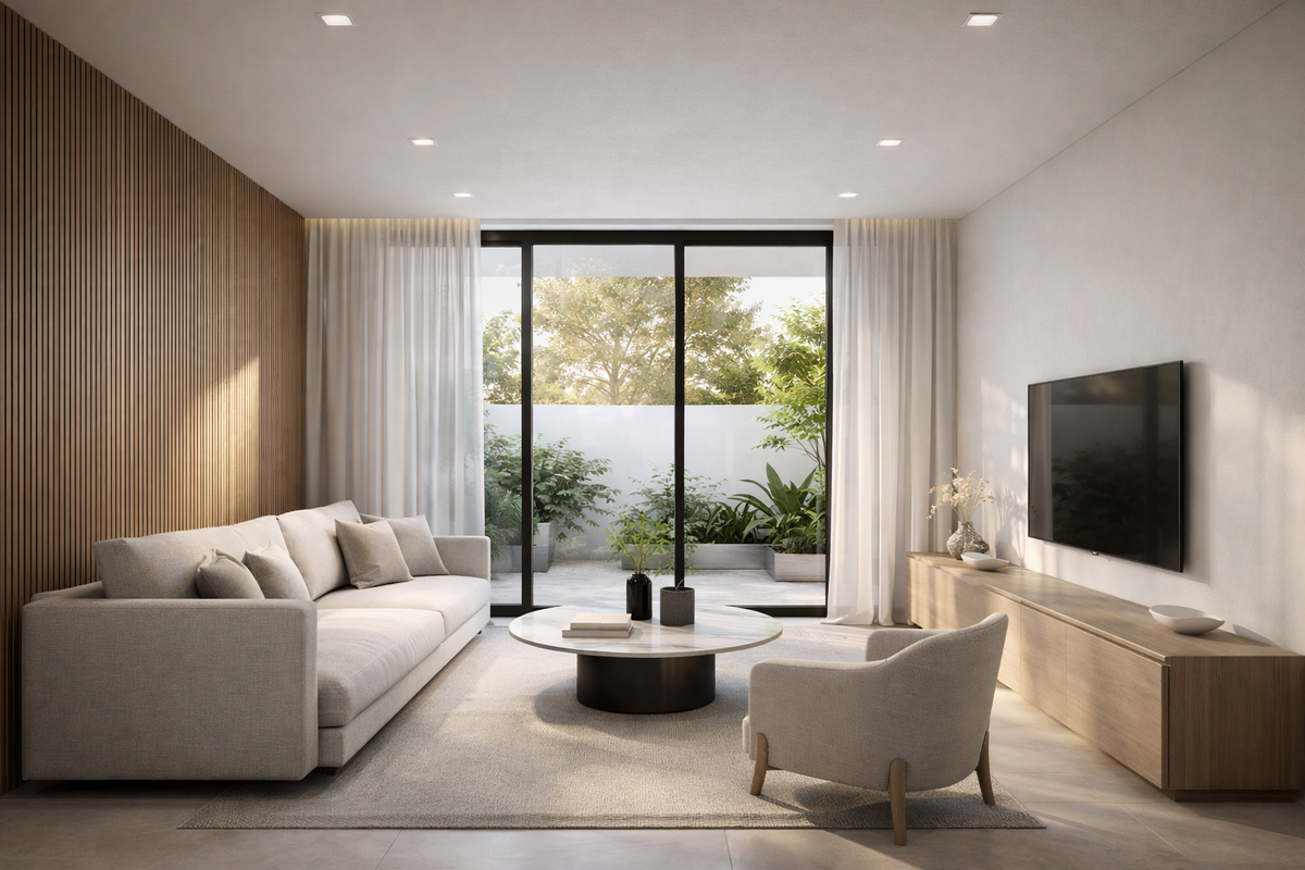 SoftEdge Terrace is a contemporary minimalist landed home designed for calm, everyday living. Defined by clean lines softened with warm materials, the architecture balances clarity and comfort. Generous glazing invites natural morning light deep into the home, creating bright, airy interiors that feel open yet private.